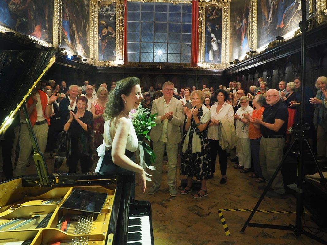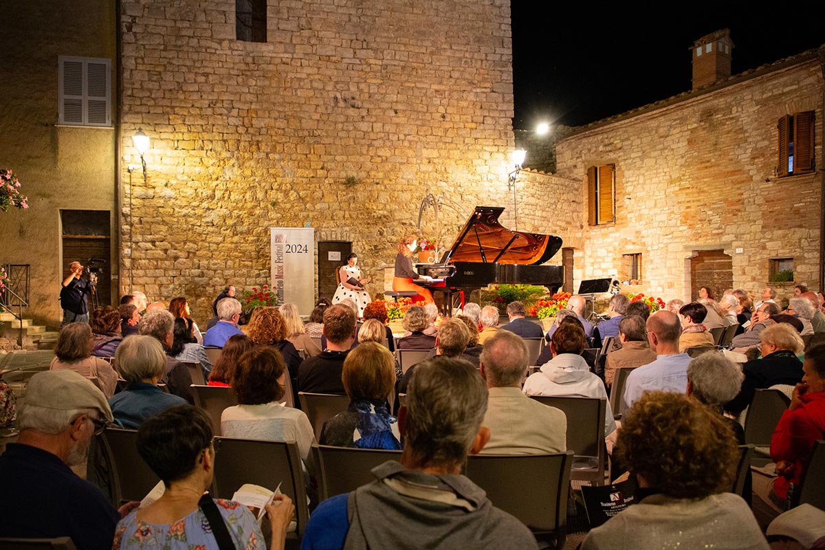 Gallery 2024 26 June – Lake Trasimeno from San Savino 26 June – San Savino – PreFestival Concert – Angela Hewitt, Anna Bonitatibus, Petrit Çeku 26 June – San Savino – PreFestival Concert – Angela Hewitt, Anna Bonitatibus, Petrit Çeku 26 June – San Savino – PreFestival Concert 26 June – San Savino – PreFestival Concert – Applause for the performers 27 June – Perugia Auditorium San Francesco al Prato – Opening Concert, Angela Hewitt 27 June – Perugia Auditorium San Francesco al Prato – Angela Hewitt & Orchestra da Camera di Perugia 27 June – Opening Concert – Applause for Angela Hewitt & Orchestra da Camera di Perugia 27 June – Opening Concert – Jaeden Izik-Dzurko & Angela Hewitt 27 June – Opening Concert – Chiara Biagioli & Jonathan Ferrucci 27 June – Opening Concert – Jaeden Izik-Dzurko, Angela Hewitt, Jonathan Ferrucci, Chiara Biagioli 27 June – Opening Concert – Applause for the performers 28 June – Castle of the Knights of Malta, Magione – Jordi Savall, Hakan Gügör, Dimitri Psonis 28 June – Castle of the Knights of Malta, Magione – Concert with Jordi Savall, Hakan Gügör, Dimitri Psonis 28 June – Castle of the Knights of Malta, Magione – Jordi Savall 28 June – Castle of the Knights of Malta, Magione – Hakan Gügör 28 June – Castle of the Knights of Malta, Magione – Dimitri Psonis 28 June – Castle of the Knights of Malta, Magione – Applause for Jordi Savall, Hakan Gügör, Dimitri Psonis 29 June – Castle of the Knights of Malta, Magione – Concert with Esther Hoppe, Christian Poltera, Angela Hewitt 29 June – Castle of the Knights of Malta, Magione – Applause for Esther Hoppe, Christian Poltera, Angela Hewitt 30 June – Castle of the Knights of Malta, Magione – People waiting for the concert 30 June – Castle of the Knights of Malta, Magione – Valo Quartet 30 June – Castle of the Knights of Malta, Magione – Valo Quartet with Petrit Çeku 30 June – Castle of the Knights of Malta, Magione – Concert with Valo Quartet & Petrit Çeku 1 July – Basilica di San Pietro, Perugia – Rudolf Lutz discusses the Bach Cantatas with Angela Hewitt 1 July – Basilica di San Pietro, Perugia – Rudolf Lutz discusses the Bach Cantatas with Angela Hewitt 1 July – Basilica di San Pietro, Perugia – Angela Hewitt & Rudolf Lutz play improvisations on Bach 1 July – Basilica di San Pietro, Perugia – J.S. Bach-Stiftung, St. Gallen 1 July – Basilica di San Pietro, Perugia – Miriam Feuersinger, soprano, with J.S. Bach-Stiftung 1 July – Basilica di San Pietro, Perugia – Peter Harvey, baritone, with J.S. Bach-Stiftung, 2 July – Sala dei Notari, Palazzo dei Priori, Perugia – Sir Simon Schama, Angela Hewitt, Eric Friesen 2 July – Sala dei Notari, Palazzo dei Priori, Perugia – Sir Simon Schama, Angela Hewitt, Eric Friesen 2 July – Sala dei Notari, Palazzo dei Priori, Perugia – During the interview with Sir Simon Schama 3 July – Oratorio di San Francesco dei Nobili, Perugia – Closing Recital with Angela Hewitt 3 July – Oratorio di San Francesco dei Nobili, Perugia – Closing Recital with Angela Hewitt 3 July – Oratorio di San Francesco dei Nobili, Perugia – Angela & Vittoria Ferdinandi Mayor of Perugia